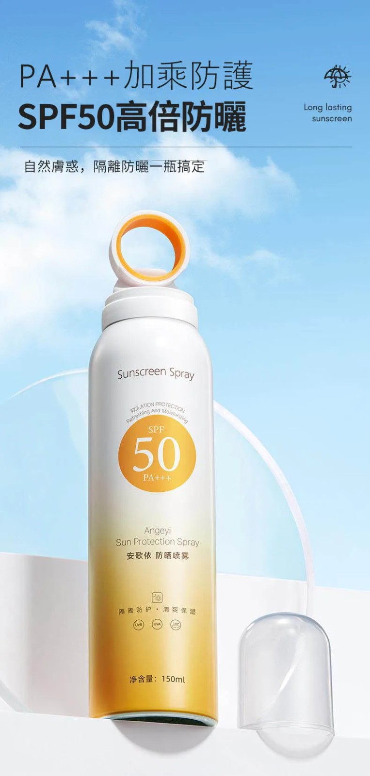 15分鐘前安歌依光圈防曬噴霧,細密噴頭設計 噴頭360°可旋轉自然膚惑,隔離防曬一瓶搞定 - 僅此一天「安歌依光圈防曬噴霧」8入72%用戶的選擇!NT$1598【限時免運】